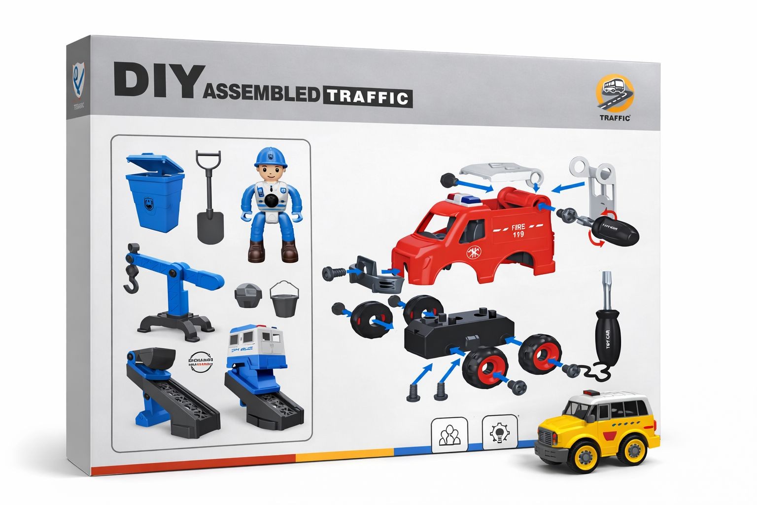 Bring hands-on fun and imaginative play together with this DIY Assembled Traffic Playset. Designed to keep young minds engaged, this interactive set allows children to assemble, disassemble, and play while learning about vehicles, tools, and everyday traffic scenarios.