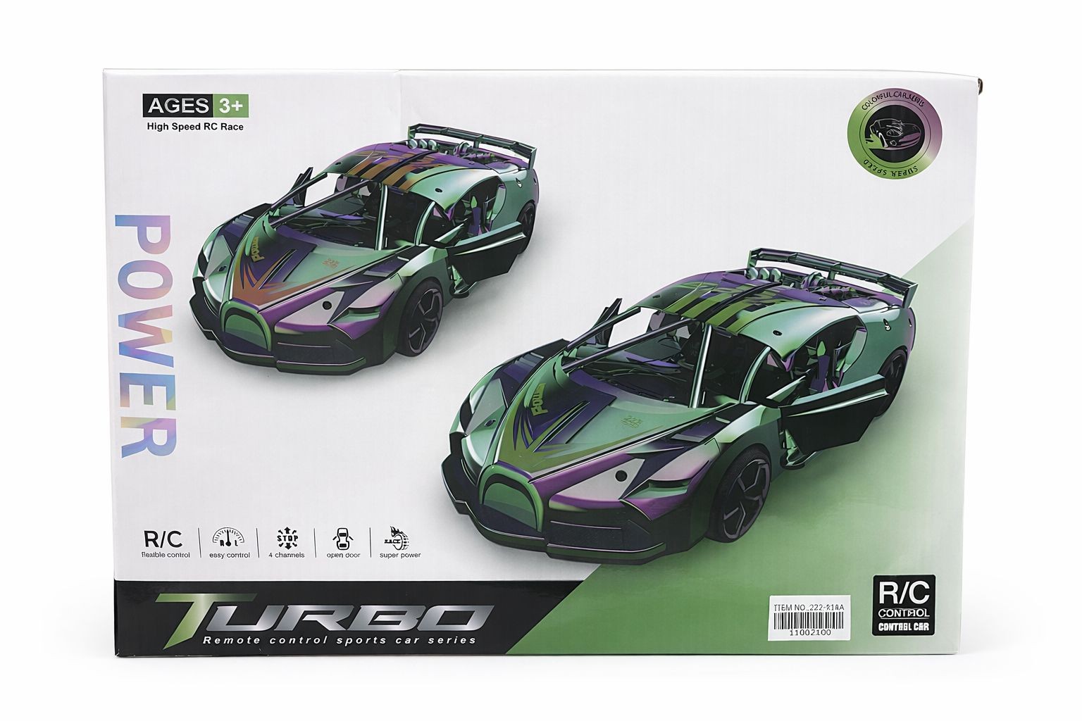 Bring high-speed excitement home with the Turbo R/C Remote Control Sports Car, designed for young racers who love bold style and fast action. Featuring a striking iridescent green and purple finish, this sleek sports car looks just as impressive standing still as it does racing across the floor.